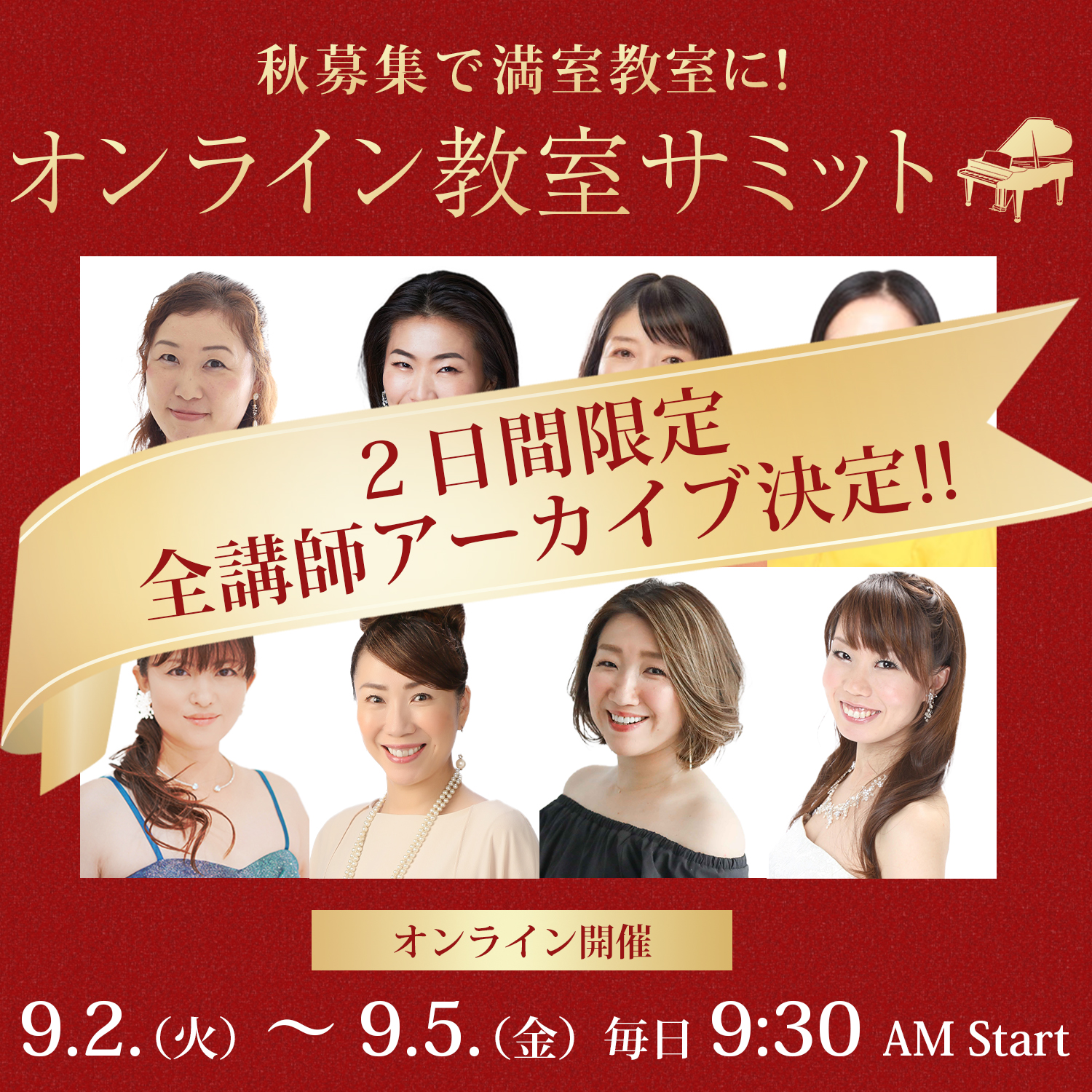 受講生の実績としては、お問い合わせが激減し、自然消滅しようとしていた教室が、地域相場で一番高い月謝の値上げに成功し、満室の教室になったり、ピアノ指導者のためのオンライン講座を開講し、日本全国、世界からの受講者が参加。また、収入面では、レッスン以外の収入の柱を作ったことにより、月収100万円以上の売り上げを達成する受講生は多数。